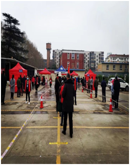 全員大檢測,時間緊、任務(wù)重、困難多,不容絲毫馬虎。職能部門二支部黨員協(xié)同延安社區(qū)工作人員制定全員核酸檢測方案,繪制區(qū)域分布平面圖,做到網(wǎng)格再細(xì)化、流程再具體、預(yù)案再完善。3月24日支部黨員干部下沉一線,協(xié)助社區(qū)、軸研建設(shè)志愿者連夜做好軸研所停車場核酸檢測點(diǎn)設(shè)置,及時聯(lián)系員工對停車場內(nèi)車輛清場,按照標(biāo)準(zhǔn)規(guī)范設(shè)置登記區(qū)、采樣區(qū)、隔離區(qū),各區(qū)域粘貼一米線標(biāo)識;現(xiàn)場擺放指示牌、工作臺、拉起警戒線,配備了防護(hù)服、測溫槍、消毒液等。為檢測工作平穩(wěn)有序運(yùn)轉(zhuǎn)提供了堅(jiān)實(shí)的保障。