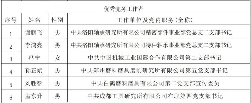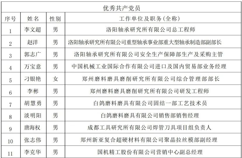國機精工股份有限公司2021年度"兩先一優(yōu)"名單