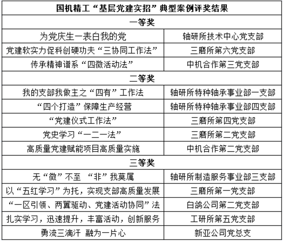 公司多個(gè)黨支部榮獲國(guó)機(jī)精工“基層黨建實(shí)招”評(píng)比獎(jiǎng)勵(lì)