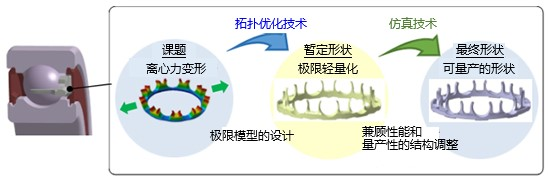 NSK通過新開發(fā)的潤滑脂和樹脂保持架,實現(xiàn)了dm·n值140萬的高速旋轉(zhuǎn)工況(軸承內(nèi)徑:35 mm;轉(zhuǎn)速:30000r/min),如圖3所示;今年NSK又推出了第三代世界最高轉(zhuǎn)速、電動車驅(qū)動電機(jī)用高速球軸承(圖4)。