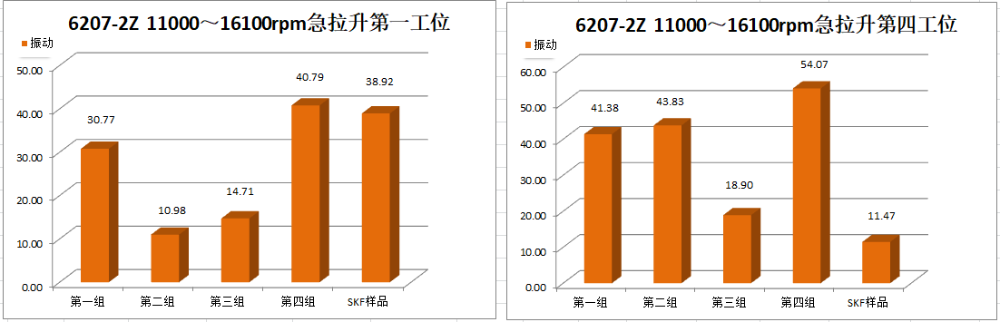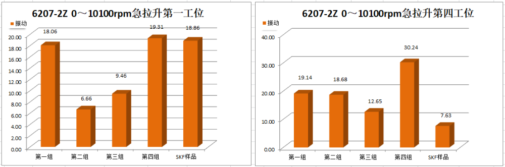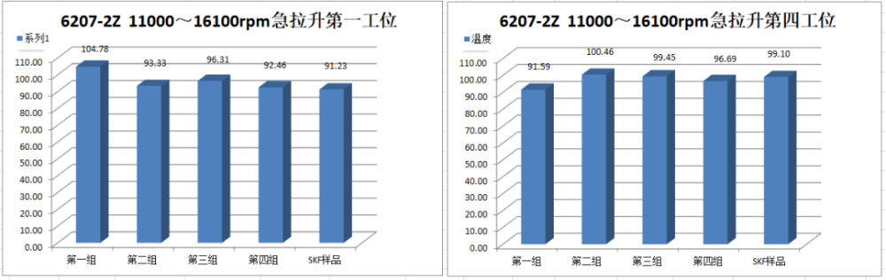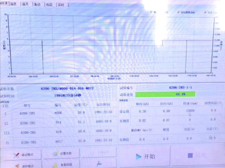Ⅳ號工位軸承運(yùn)行到18000r/min速度段2min后溫度報警停機(jī),第二次運(yùn)行到18000r/min速度段15min后溫度報警停機(jī)。