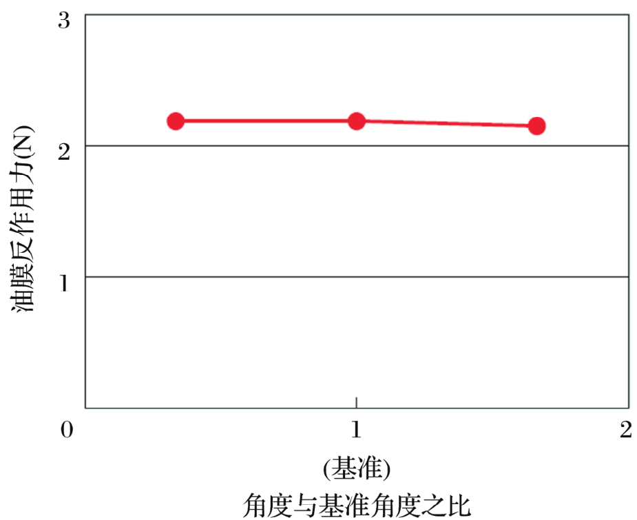 摩擦力矩測(cè)量結(jié)果和滑動(dòng)表面的油膜壓力分布顯示,出現(xiàn)在V形潤(rùn)滑槽端部的力與由于油膜壓力(油膜反作用力)導(dǎo)致摩擦力矩降低的力方向相反。油膜反作用力越大,摩擦力矩越低。因此,可認(rèn)為V形潤(rùn)滑槽數(shù)量越多,寬度越寬,油膜反作用力越大。流體分析證實(shí)了這點(diǎn)。