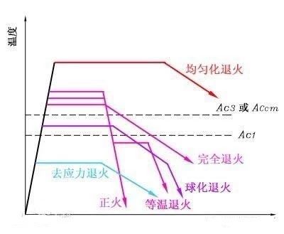 ⑦ 去應(yīng)力退火。用以消除鋼鐵鑄件和焊接件的內(nèi)應(yīng)力。對于鋼鐵制品加熱后開始形成奧氏體的溫度以下100~200℃,保溫后在空氣中冷卻,即可消除內(nèi)應(yīng)力。
