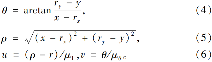 如圖8所示,點(diǎn)Px,y坐標(biāo)分別表示其距離原點(diǎn)O的水平距離與垂直距離;點(diǎn)P'的坐標(biāo)u,v分別表示點(diǎn)Р在圖8a中相對(duì)圓心(rx,ry)的極角與極徑。