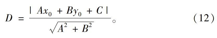 提取出缺陷區(qū)域后可以計(jì)算出該缺陷的最小外接矩形與該外接矩形的主軸直線公式,Ax+By+C=0于是小圓圓心(x0,y0)至主軸直線的距離D