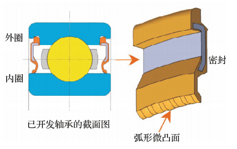 為防止變速器潤滑油中存在硬質(zhì)異物的惡劣環(huán)境導致軸承使用壽命降低,通常采用接觸式密封來提高抵抗異物(如來自齒輪的磨粒)的能力。然而,由于密封的滑動阻力,接觸式密封軸承具有較大的轉(zhuǎn)矩。LE密封優(yōu)化了密封形狀和材料,在保證接觸式密封效果的同時實現(xiàn)低轉(zhuǎn)矩。這種密封成功地降低了轉(zhuǎn)矩,提高了極限線速度。LE密封通過設(shè)置在密封唇滑動區(qū)域的弧形(半圓柱形)微凸面(圖5)的楔形壓力效應(yīng),促進密封唇與內(nèi)圈滑動表面之間形成流體潤滑油膜來實現(xiàn)這些效果(表2、圖6)。